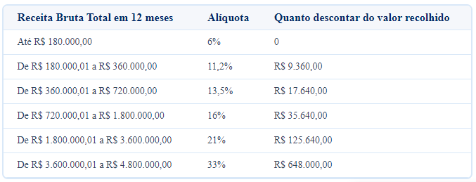 Tabela 3 Simples Nacional: Anexo 3 – Prestadores de Serviço
