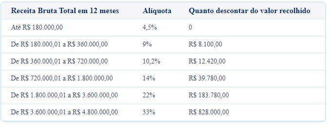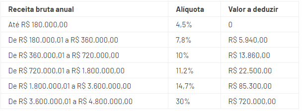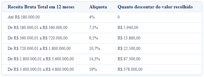 Tabela 3 Simples Nacional: Anexo 3 – Prestadores de Serviço